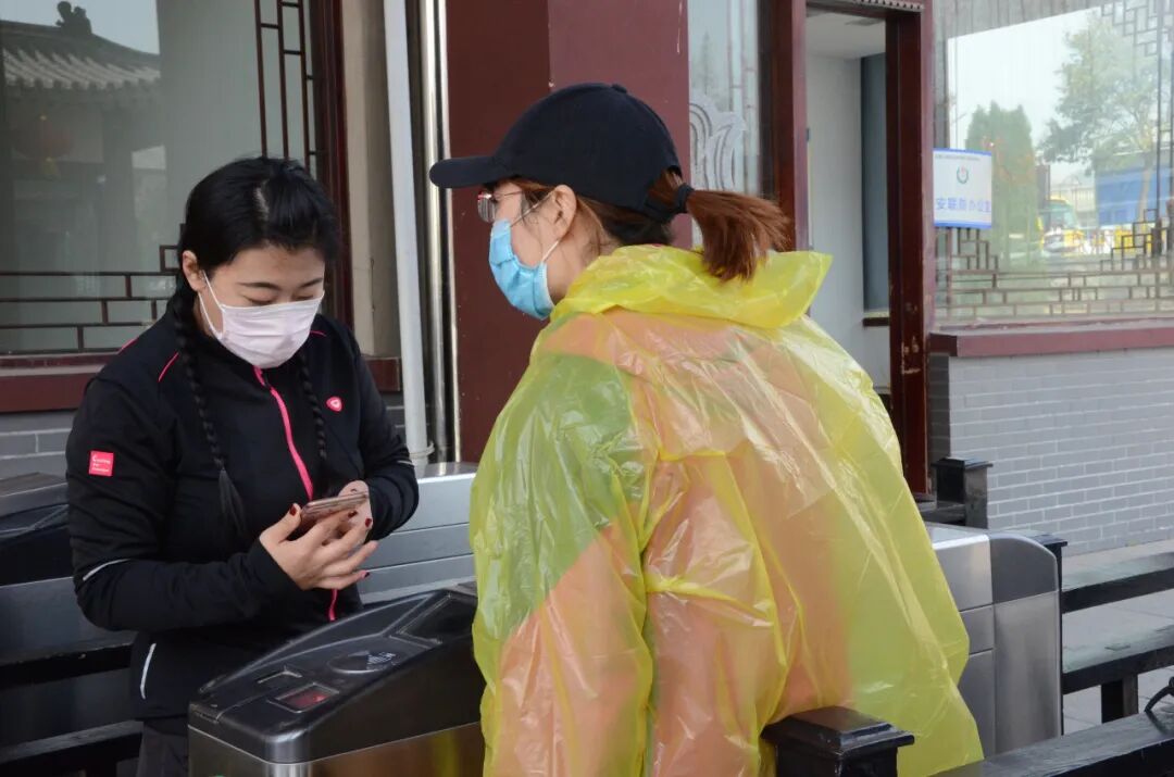 为切实维护景区及游客安全,全面保障游客舒心、安全游园,景区对所有入园游客实行“一日一进一测一登记”,并设置1.5米安全距离隔离,提醒游客佩戴口罩,安全有序排队。实名购票,查验身份,体温检测、消毒检查、做好游客入园流程须知的讲解、查看山东省健康通行卡(码)等,落实规范好每一项入园流程,保证游客安全、顺利、有序进入景区。