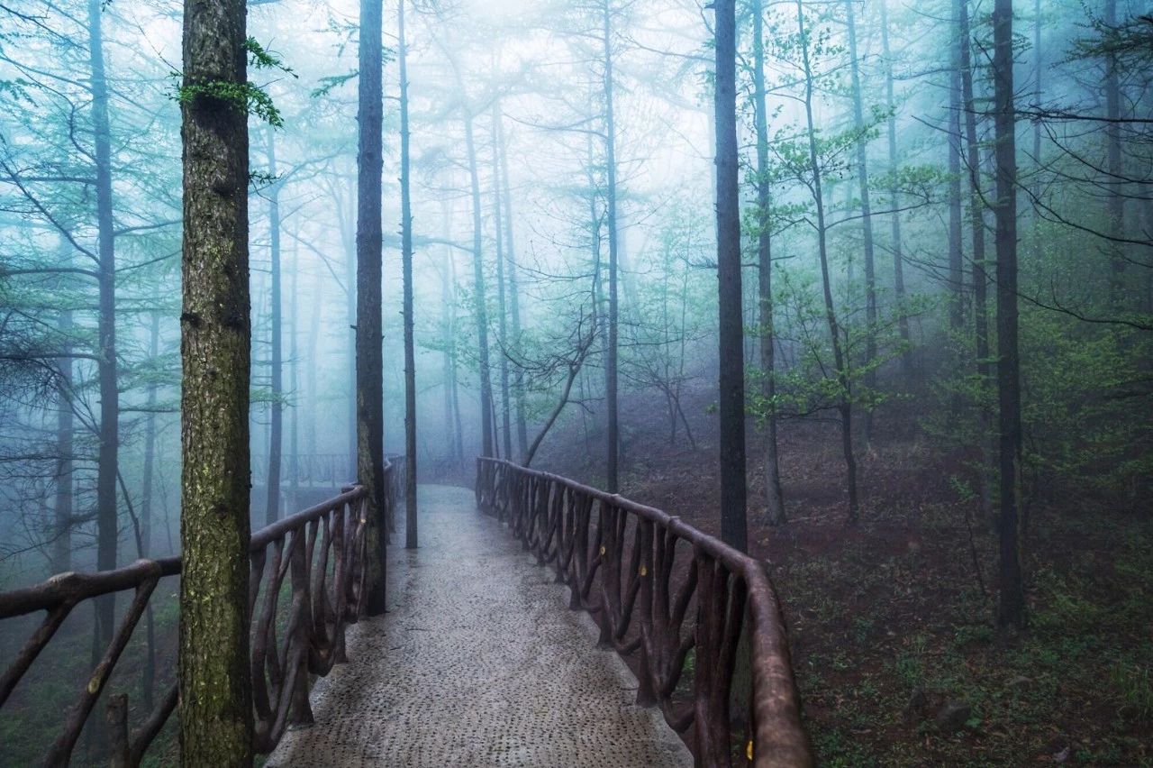 一场蒙蒙的雨,是蒙山布下的浪漫帷幔。山峰时隐时现,光线忽明忽暗,让平时俊朗的山峰,多了一些柔和。