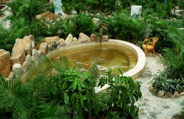 蒙山·康谷温泉,一期面积3.8万平方米,66个泡池正在使用中,室内温泉设有动感SPA池,对身体各个部位穴位进行按摩。