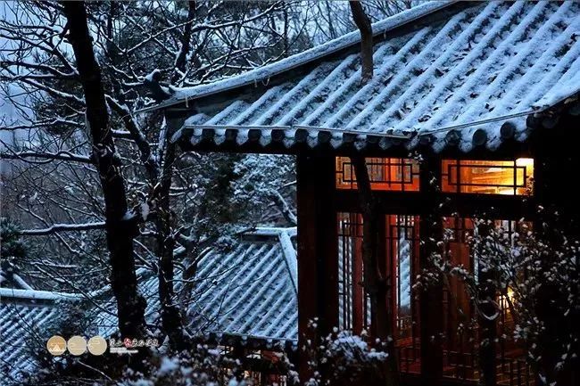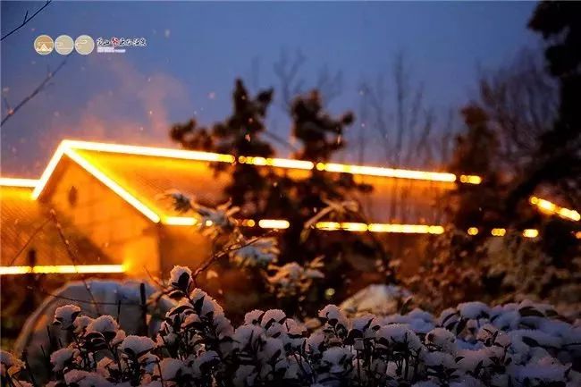 倘若喜欢山间的雪,不妨在傍晚时分结束旅程,借着消茫的夜色走入温泉中。枝桠上缀满的雪花绽放着清冷,林间星星点点的橘光却透露着若有似无的温暖,给人以舒适、慰藉。