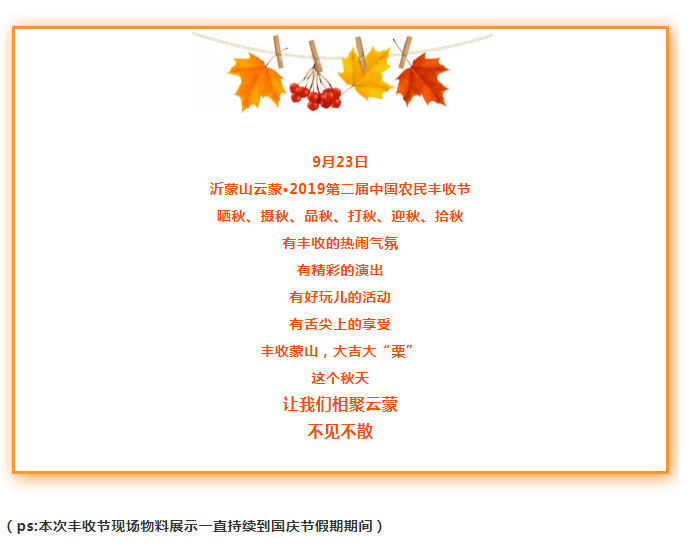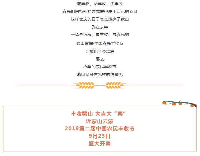 【精彩预告】沂蒙山云蒙·2019第二届中国农民丰收节即将重磅来袭,丰收盛宴先睹为快!