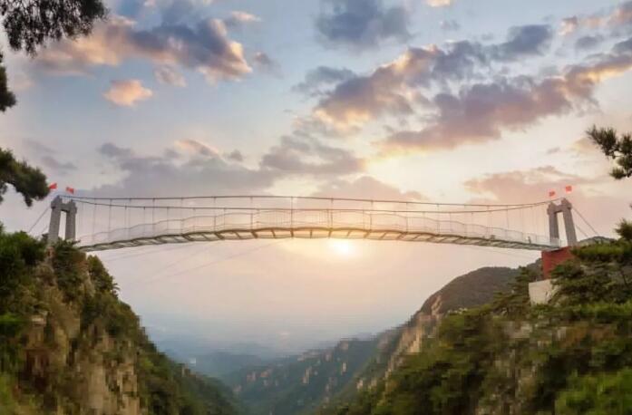 有一座全透明的玻璃悬索桥,屹立于海拔千米的沂蒙山巅之上,它就是“蒙山5D玻璃桥”。行走在透明的桥面之上,山下便是千米悬崖,耳边玻璃碎裂的声效更刺激着你的“小心脏”,勇敢者的游戏,敢挑战否?
