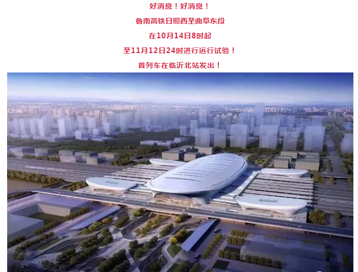 重磅!鲁南高铁运行试验首班列车临沂发车,以后来蒙山更方便啦!