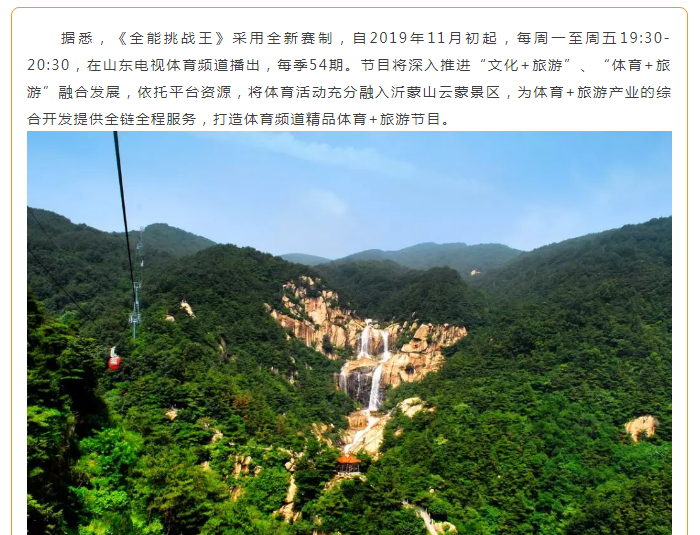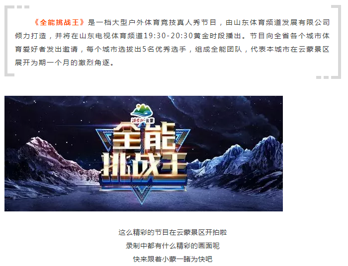 【重磅预告】山东体育频道《全能挑战王》栏目在云蒙景区正式开拍!