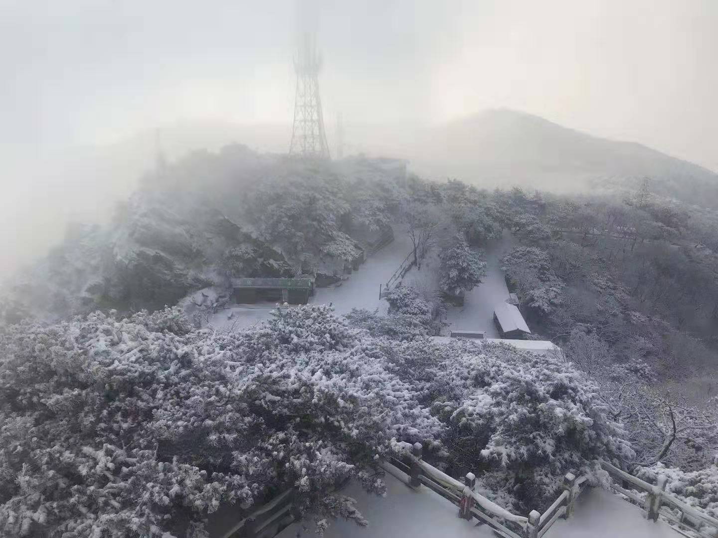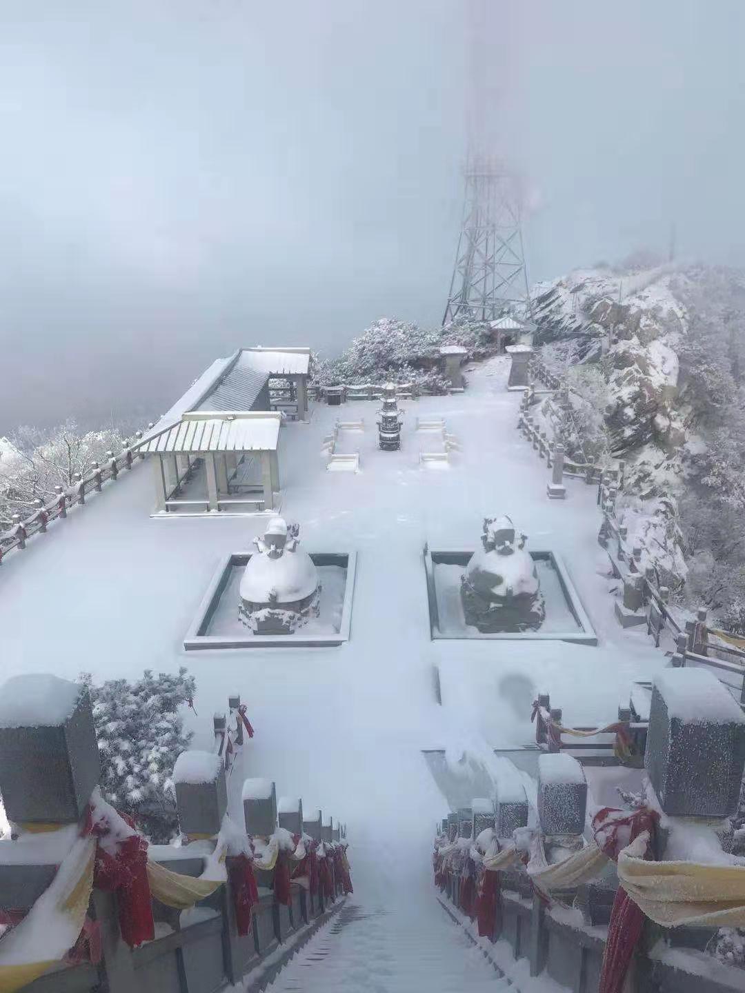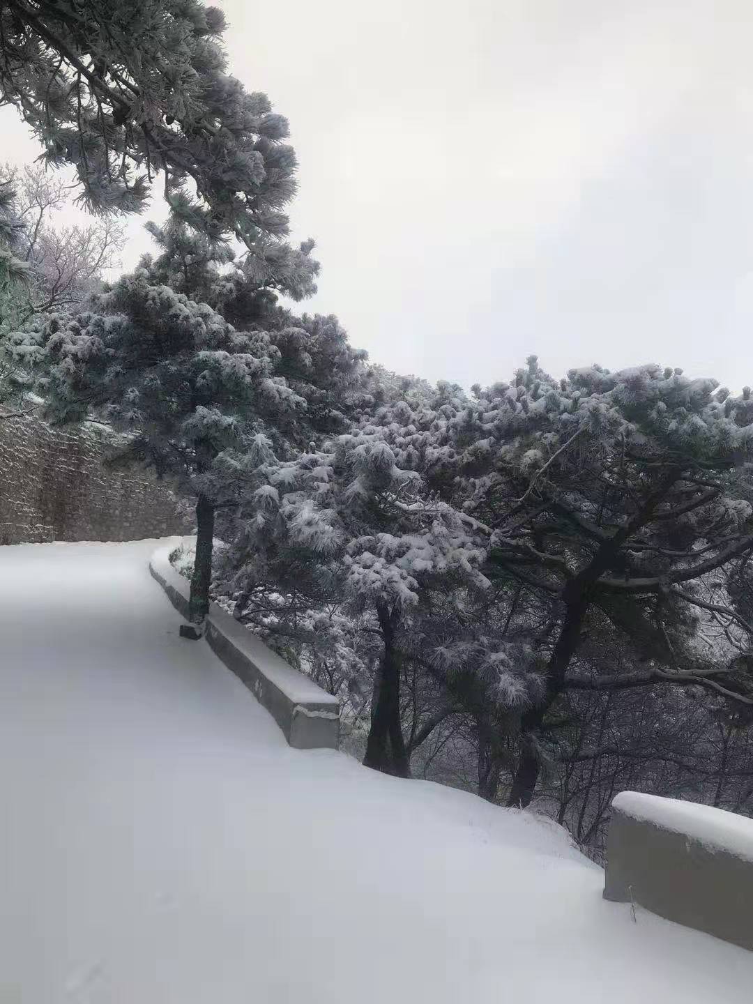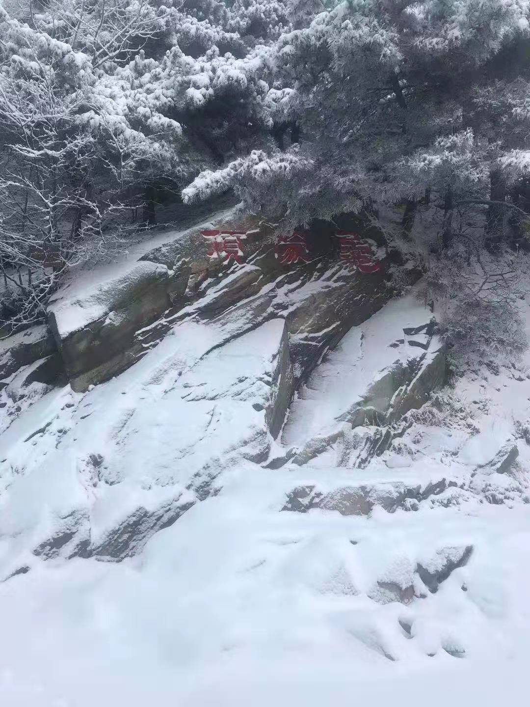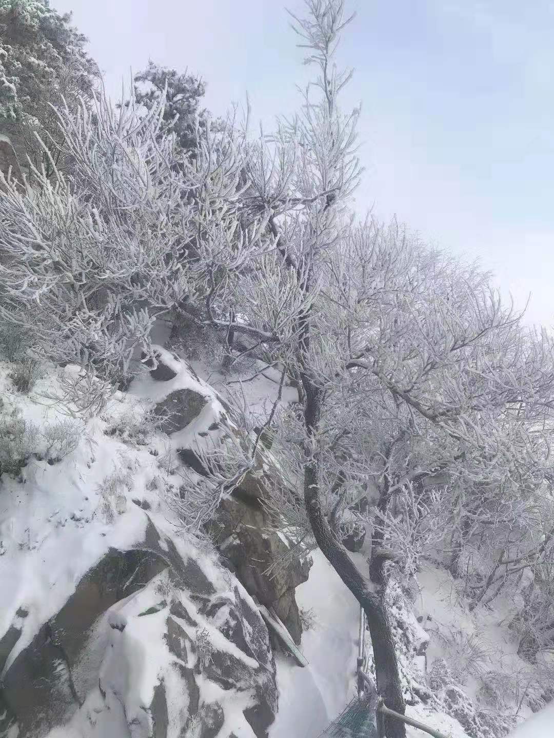 蒙山龟蒙景区也迎来了一场大雪。