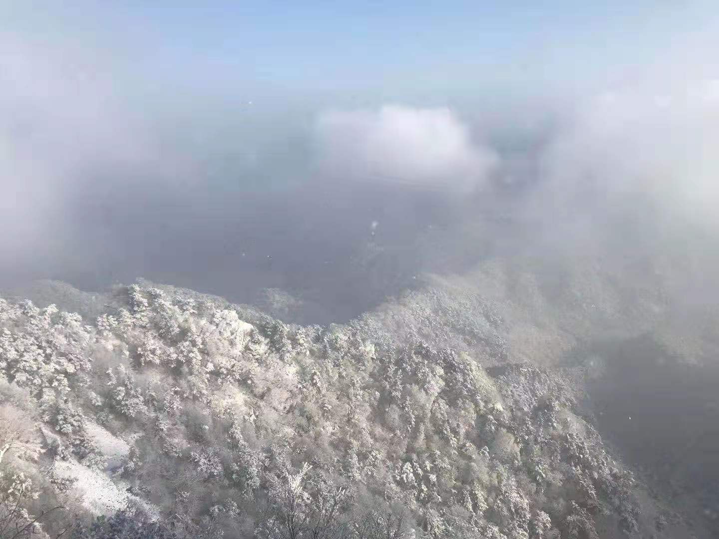 雪中的蒙山,银装素裹,圣洁庄严,玉树琼枝,伫立在苍茫的天地之间,好一幅精雕细刻的雪景图。