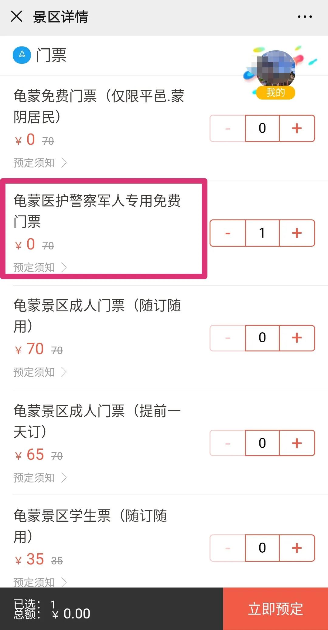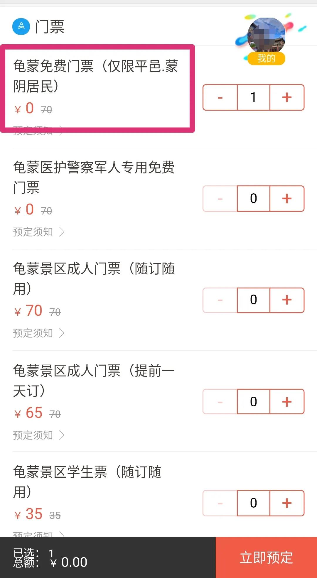 2.平邑及蒙阴居民免门票,扫描Q1二维码,进入购票页面,选择相应票种。若长期居住在两地的居民,可持山东省居住证(地址为平邑或蒙阴)到景区游客中心应急窗口办理入园手续。