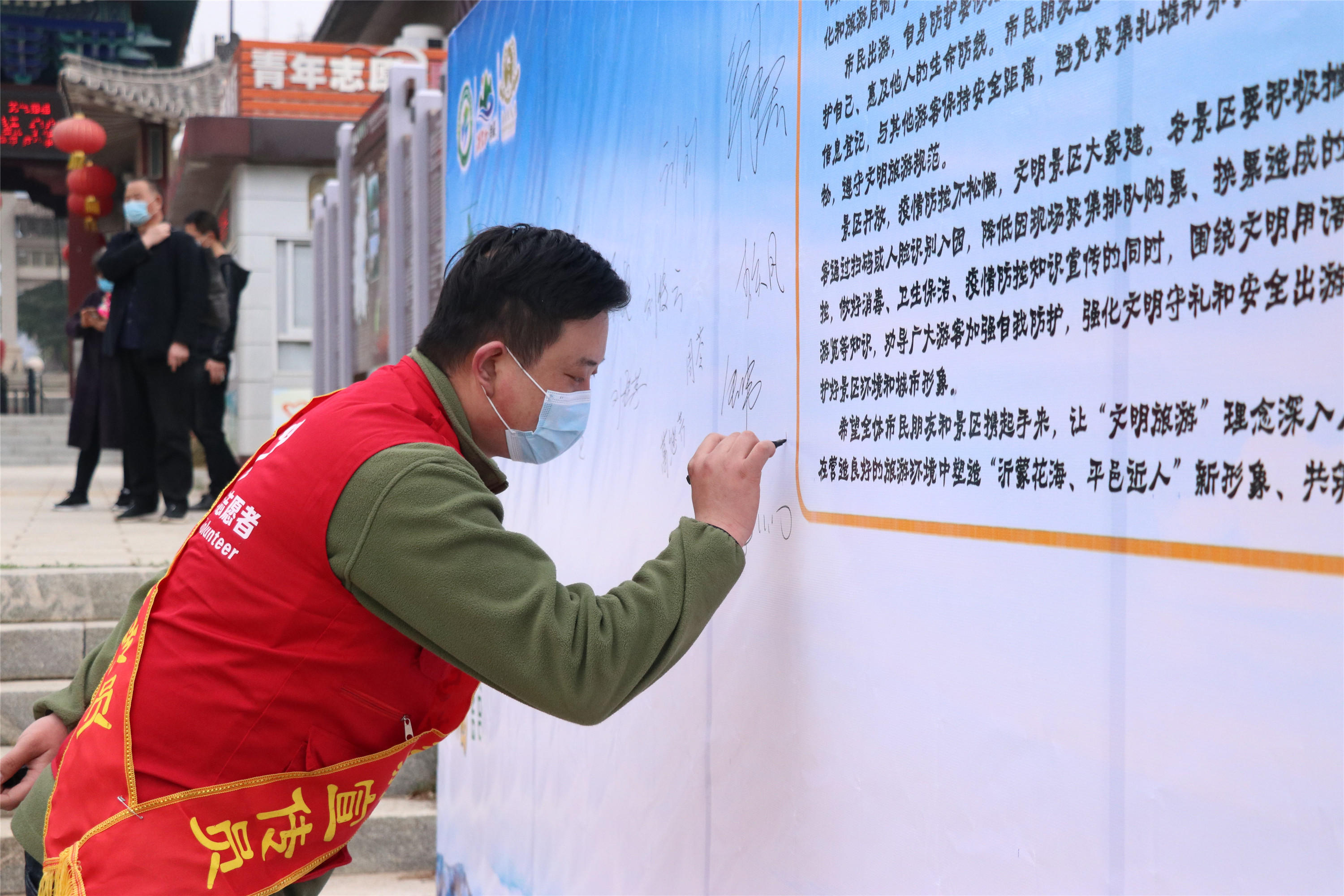 今日,由平邑县文明办、共青团平邑县委、平邑县文旅局、柏林镇党委、新华义工和沂蒙山龟蒙景区在龟蒙景区开展文明旅游志愿服务活动。