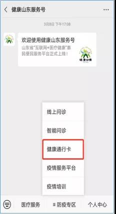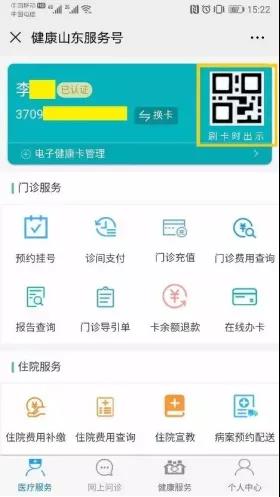 因此电子健康通行码实际上就是有颜色便于区别个人健康状况的电子健康卡,在疫情期间除了用于出行管理、健康状况外,还可以在已经部署电子健康卡识读设备的医院实现直接刷电子健康通行卡二维码实现“非接触式”就诊。也可在“健康山东服务号”点击医疗服务,选择“刷卡时出示”功能使用。