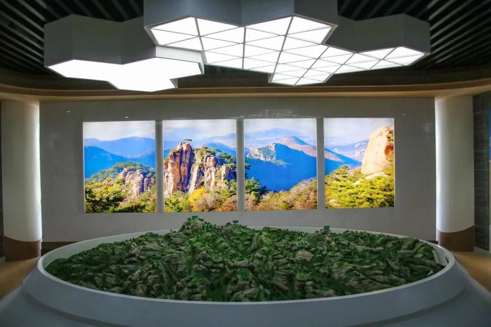 没错,这里就是沂蒙山地质公园自然生态厅。层高4.8米,建筑面积716.10平方米,主要空间内容为游客服务区,沂蒙山自然生态环境、自然生态多样性、光电效应大场景、自然生态科普之窗和户外休闲。