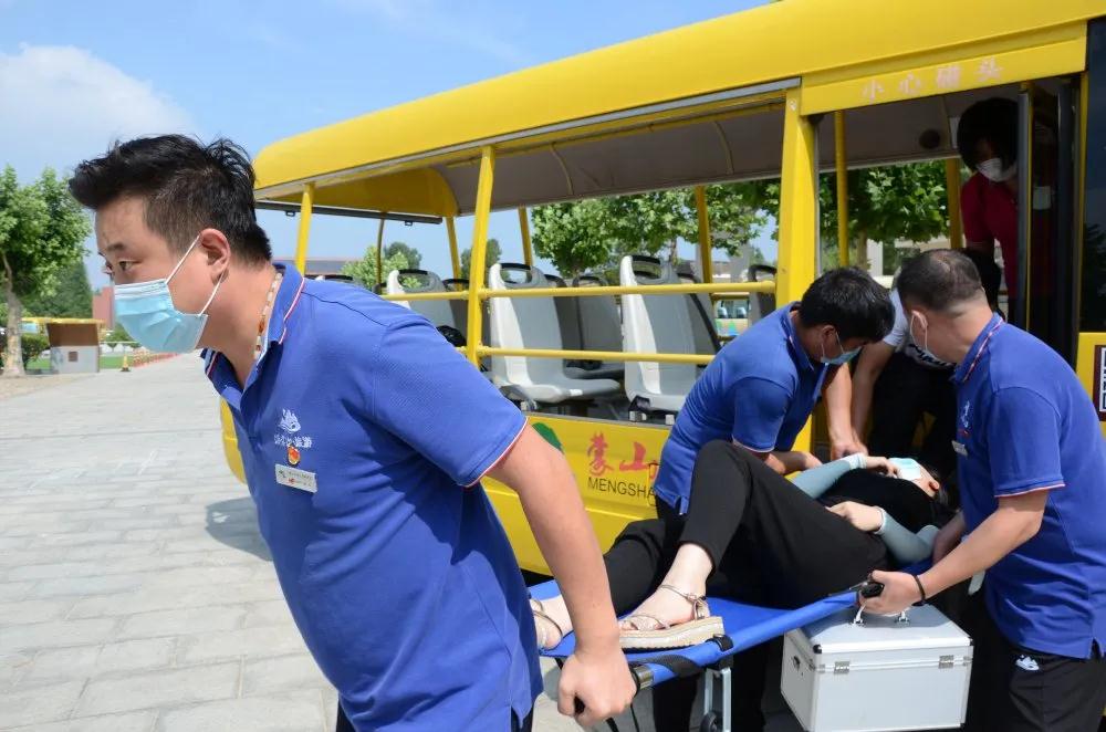 演练内容围绕“观光车下山途中刹车失灵,