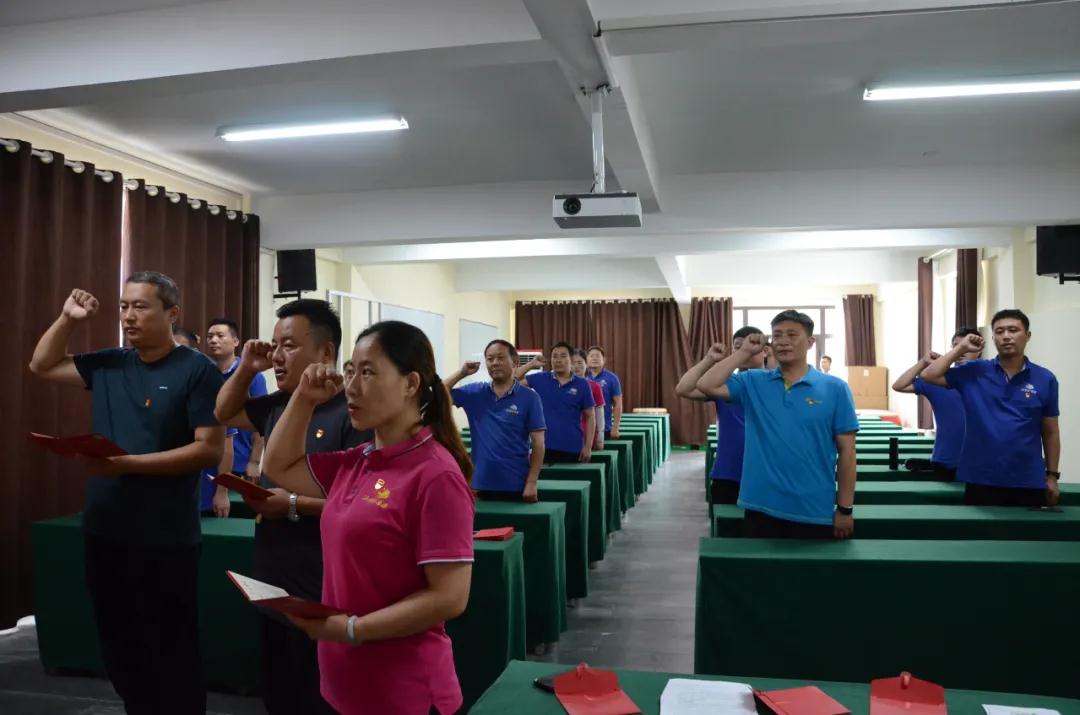 学习同时,所有党员同志面对鲜红的党旗,庄严举起右拳,重温了中国共产党入党誓词。
