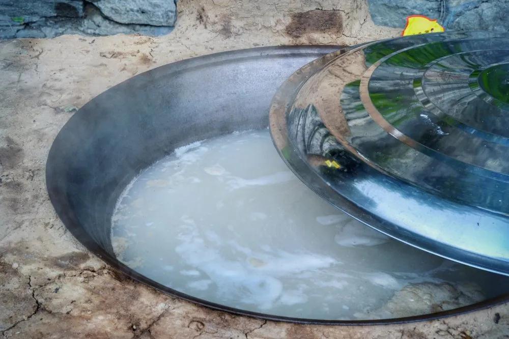 沂蒙人家后门支大锅熬羊汤,制作伏羊美食