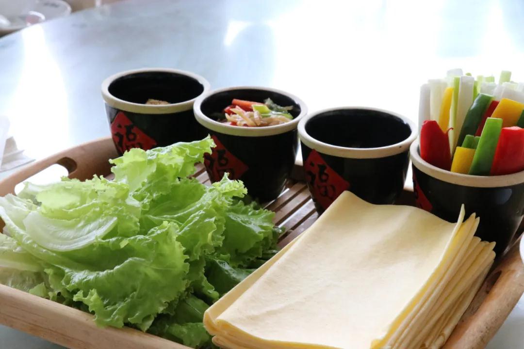 含山蘑菇炖鸡、山鸡蛋、煎饼卷大葱等十菜一汤。