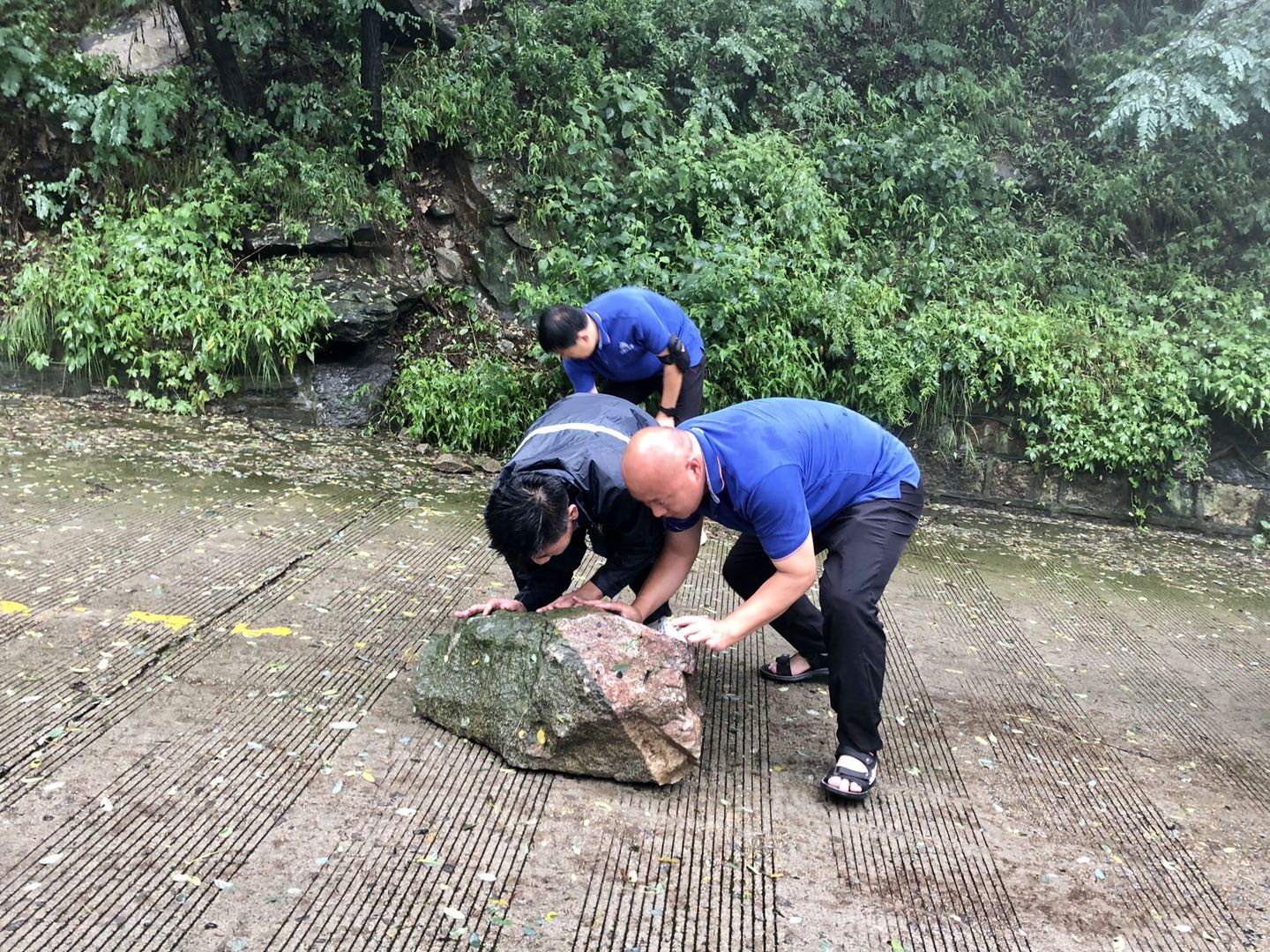 14日,雨情有所缓解,水势逐渐退去,徐永宏等又一次上山,巡查发现景区望峰亭附近有一处约15米的道路塌方,他又现场调度,冒雨组织对塌方部位紧急抢修。“第一时间排除隐患,这是我们的职责,只有我们不马虎,游客才能放心游。”徐永宏说。