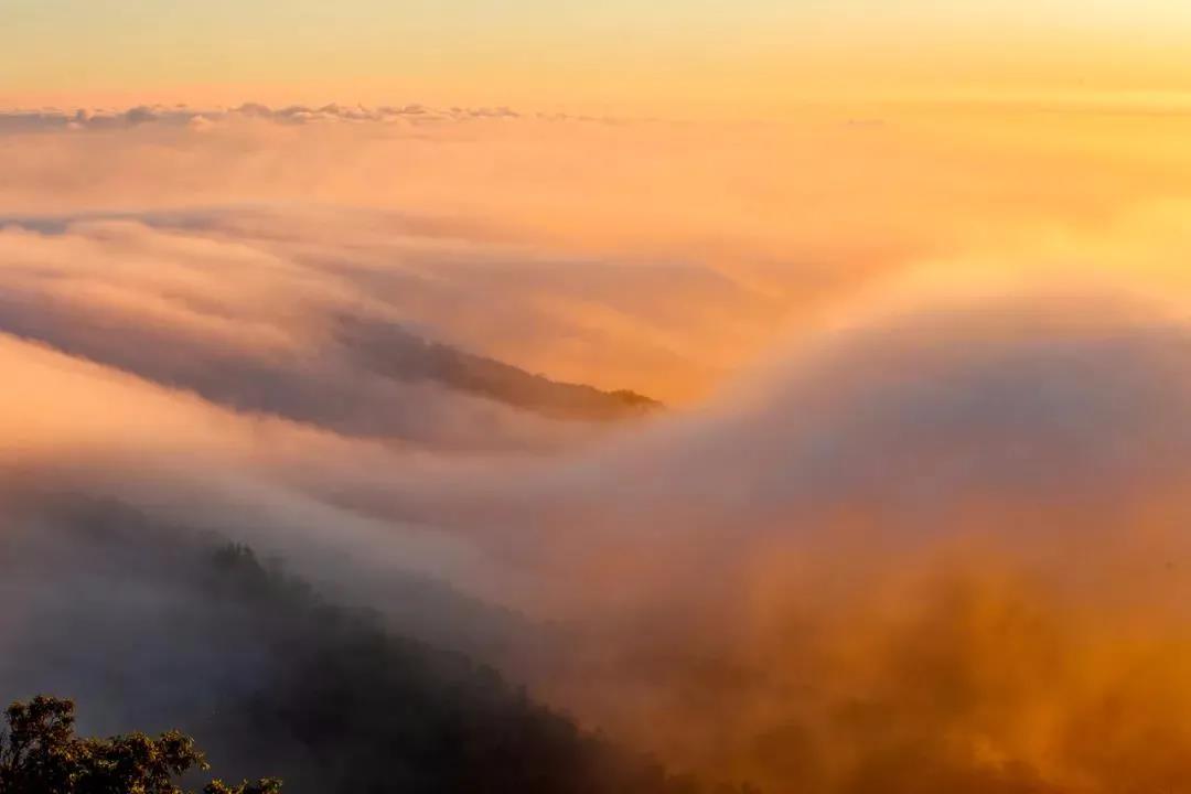 阳光照耀下静如处子的云海是它,阴雨绵绵中丝丝缭绕的云海也是它,在瞬息万变的气候天气中升腾或消逝,在春夏秋冬的四季轮换中随风摇曳。
