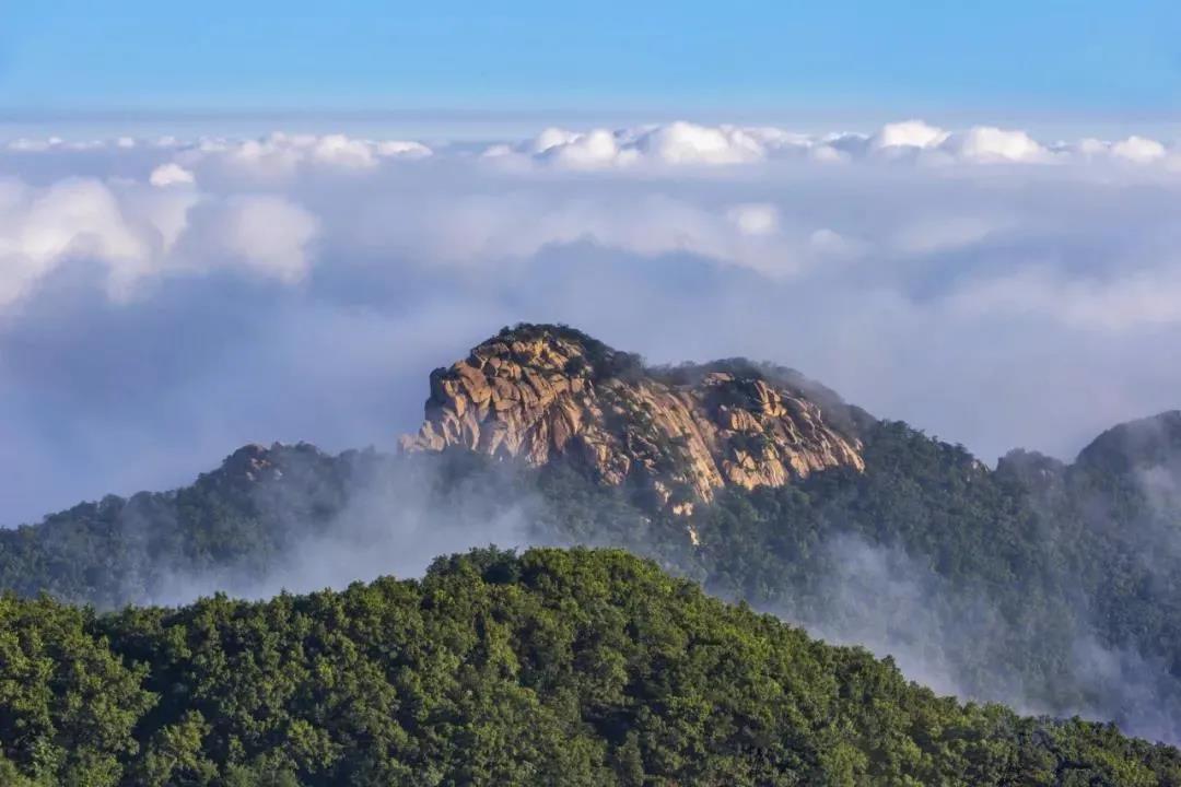 沂山云海自是虚无缥缈,于群山连绵之中缓缓而起,远观似一幕幕百尺帷幕,近看如一团团洁白棉絮。
