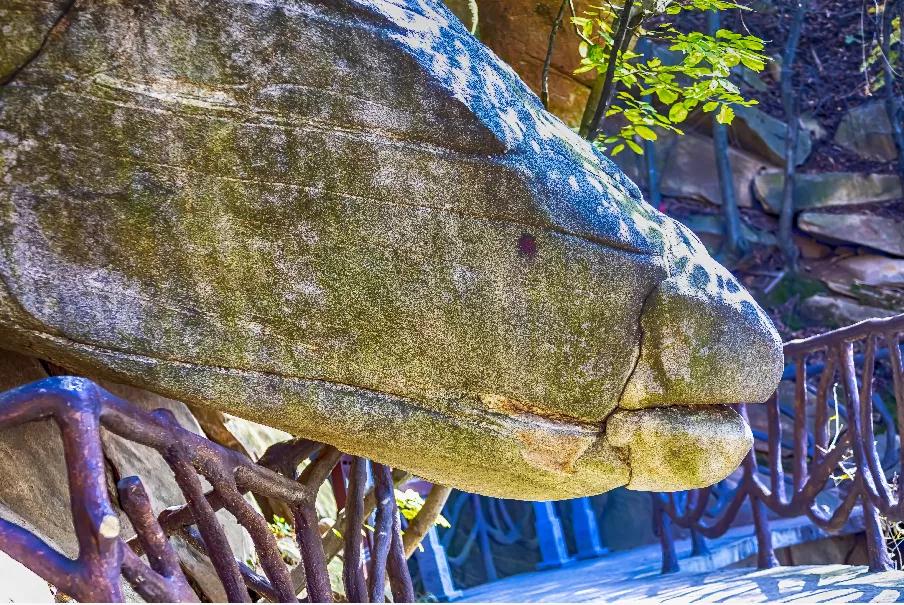 如果乘车进入景区,便可看见一片奇景,近处茂密的森林,远处高耸的山峰,林中隐藏的山路。