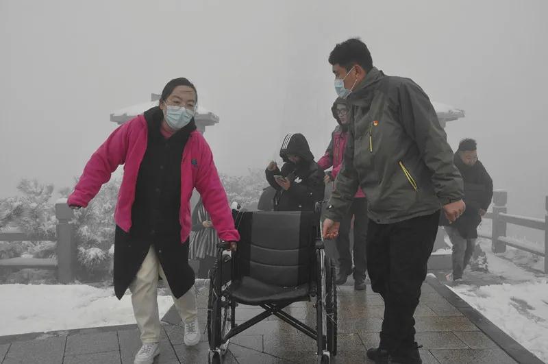推着轮椅、拿着棉衣,