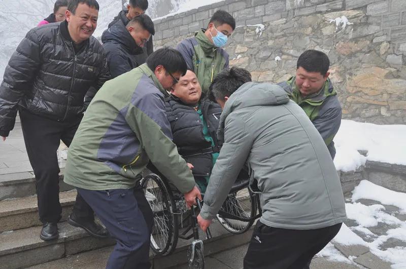 在大家准备将王鹏抬上山顶时,