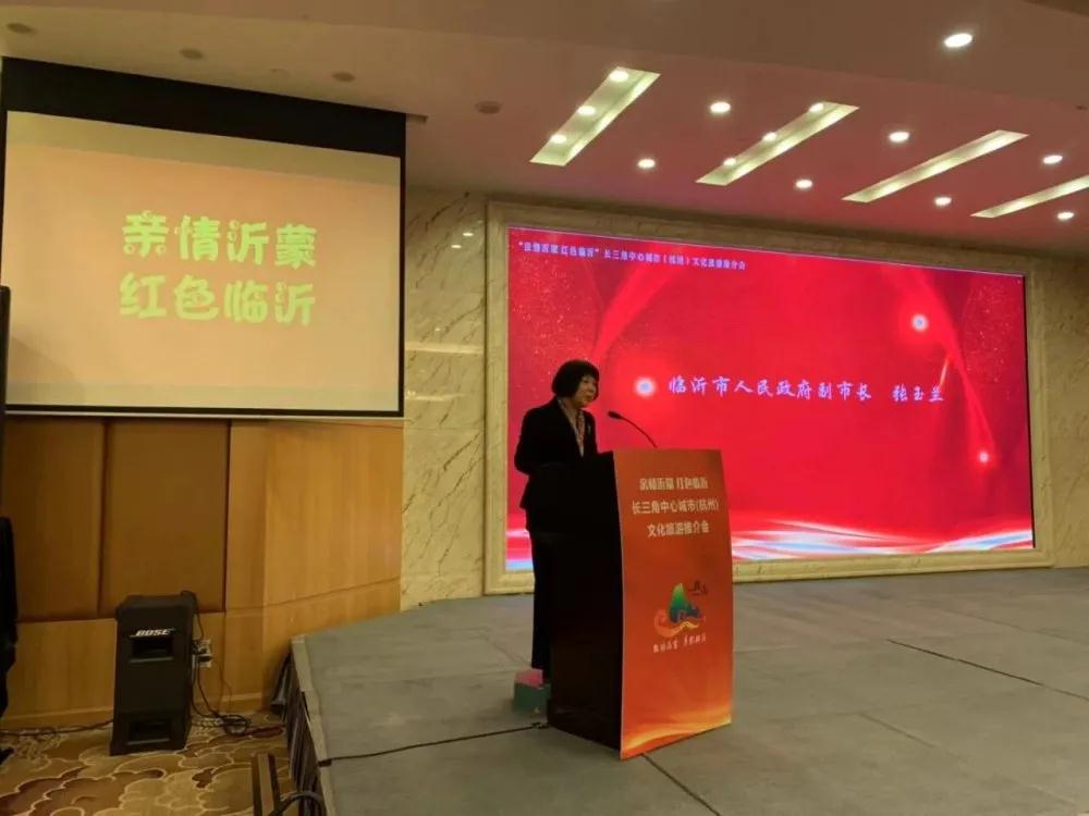 向参会嘉宾推介亲情沂蒙·红色临沂旅游品牌