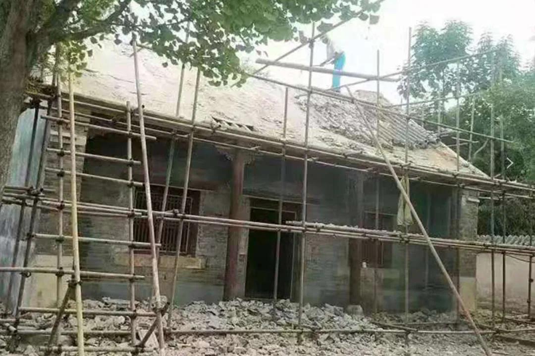 屋顶塌陷,逢雨季还会往殿内漏雨;