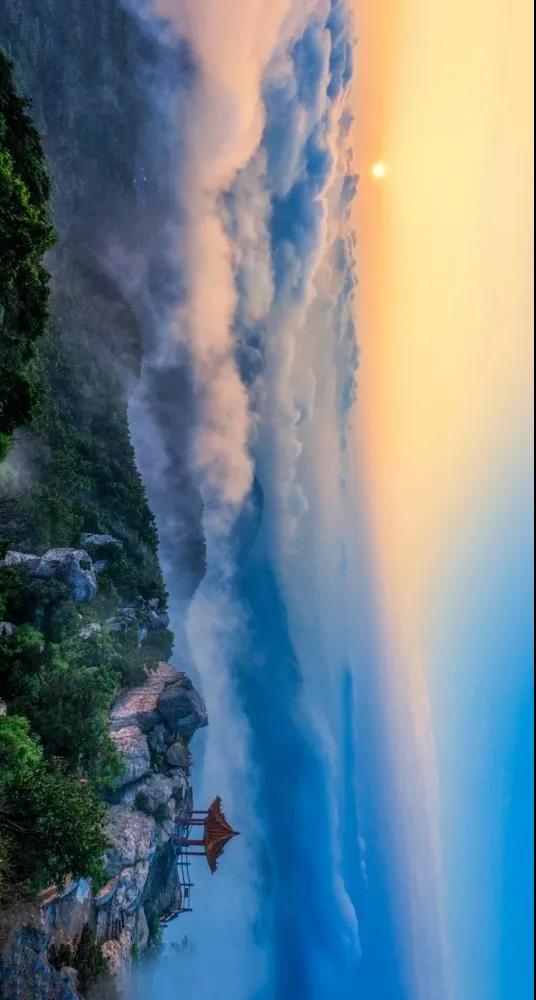 破晓晨钟沉雾海,清风一扫净苍穹。