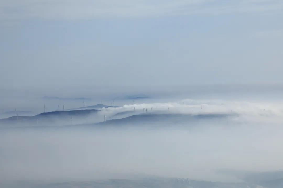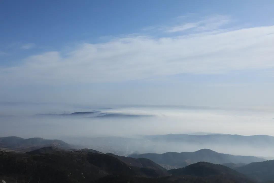 玉皇顶四周氤氲,如梦如幻。远处层层的山峦掩映在缥缈的云雾之中,融化在这漫无边际的云海中,给来沂山的游客送上新春的祝福。