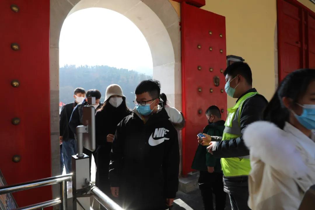 新春出游,防疫先行,为确保广大游客、市民群众度过欢乐祥和健康安全的节日,景区严格落实疫情防控措施,每一位进入景区的游客测量体温并登记造册,佩戴口罩,做好游客管控措施。确保游客新春安心游。