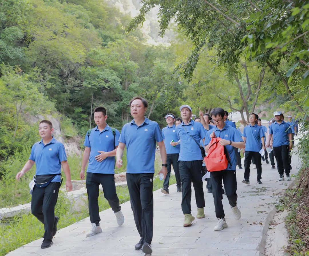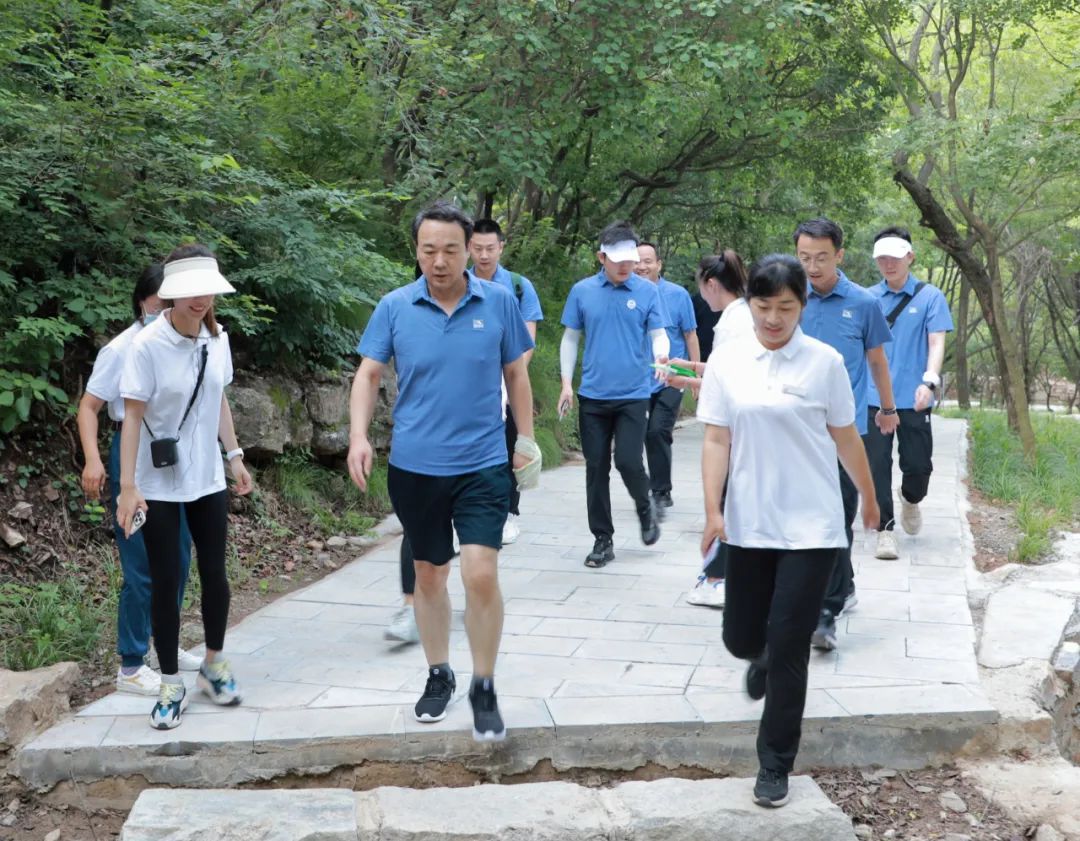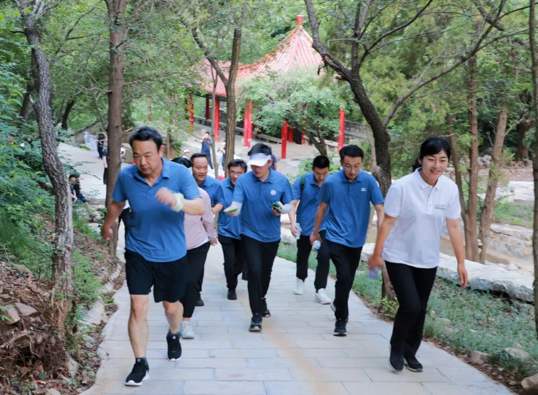 沿着景观道前行,一路旌旗招展,大家阔步前行,时而奋勇攀登,时而急转下坡,合理利用石门坊观景路的地理优势,充分展示广大干部职工的身体素质。环抱青山,感受自然,攀登是一种追求,健步是一种气魄。