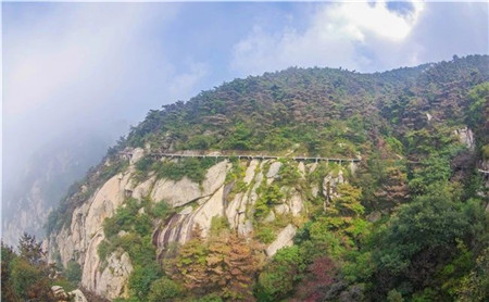 红色总能给人带来激情与喜悦。当你转过一个弯,走进深山里,蒙山铺天盖地的红叶向你展示着深秋的盛意。仰望蓝天时的恬静、眺望远山的辽阔,此刻都抛在脑后,被这一片红色感染,整个人都想狂奔起来,走进这如痴如醉的画里。
