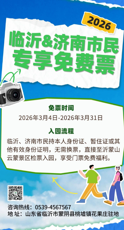 沂蒙山云蒙景区带着免费福利向你发出春日邀约2026年3月4日-2026年3月31日临沂、济南市民持本人身份证门票免费承包你一整个三月的踏青快乐零门票、高颜值、超好拍