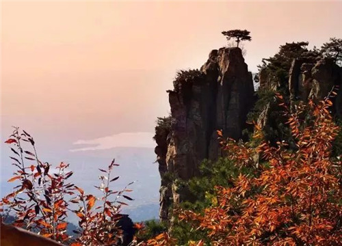 鹰窝峰是蒙山著名的景点之一,位于龟蒙景区登山中路右侧,居白云岩和东天门之间,与“百寿摩崖”隔路相望。此峰在深山峡谷中拔地而起,如擎天之柱,峭壁如削,峰顶苍松傲然挺立,犹如翠蓋,崖壁之松侧立倒垂,宛似蟠龙,景色奇美。向晚时分,在满天彩霞的映照下,峰体参差错落,时隐时显,如诗如画,不禁使人想起叶剑英元帅的诗句:“老夫喜作黄昏颂,满目青山夕照明”,也就没有了“夕阳无限好,只是近黄昏”的苍凉之感。